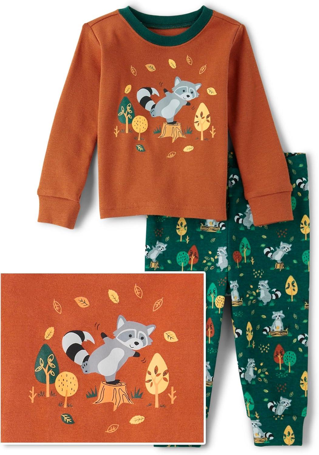 The Children’s Place baby boys Button Long Sleeve Top and Pants Snug Fit 100% Cotton 2 Piece Pajama Set(Raccoon)