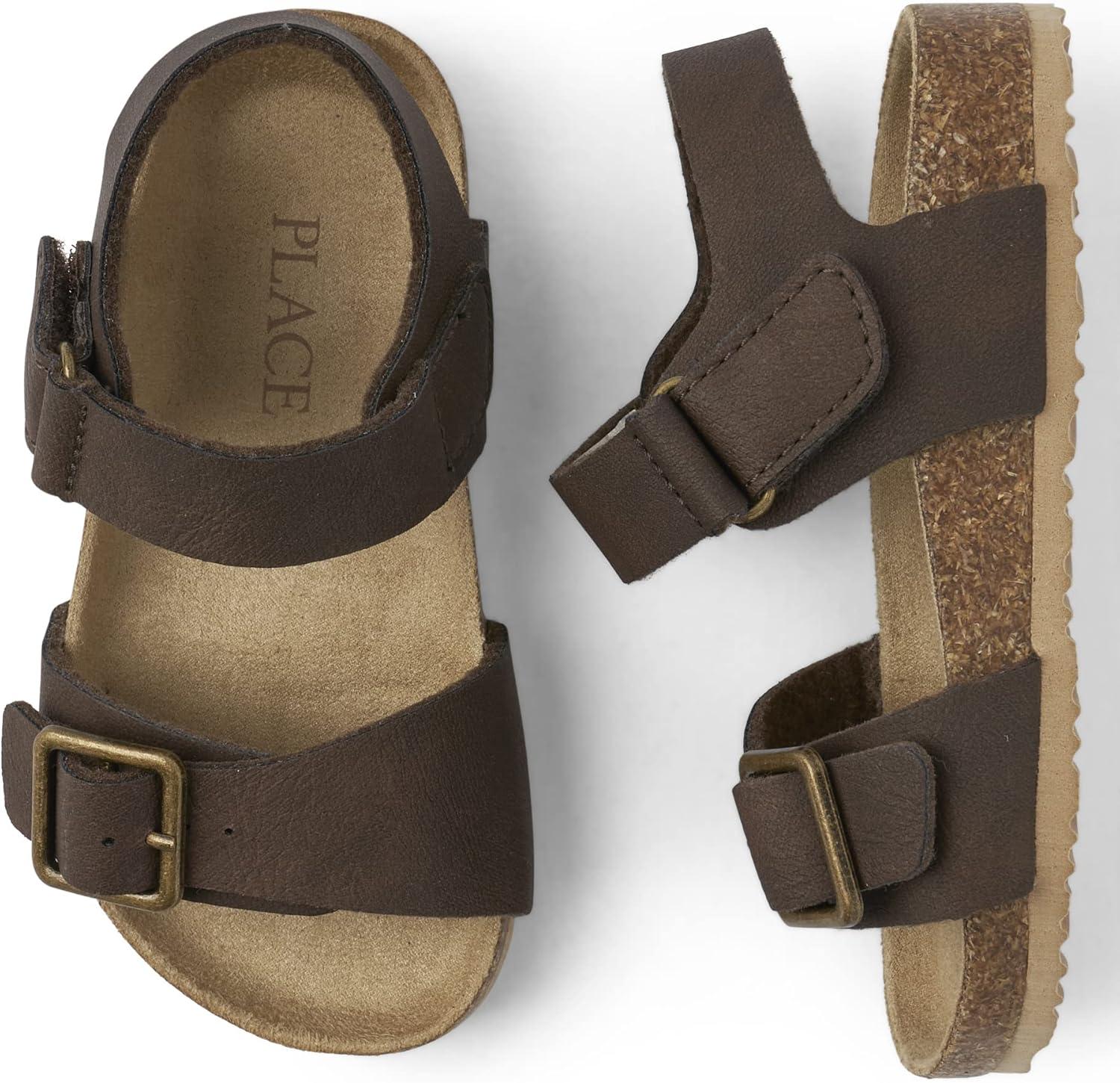 The Children’s Place Boy’s Baby Toddler Casual Adjustable Double Buckle Flat Sandals Slide(Brown)