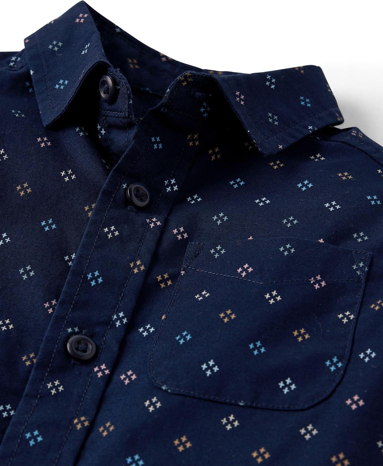 The Children’s Place boys Short Sleeve Button Up Shirt(Blue Geo)