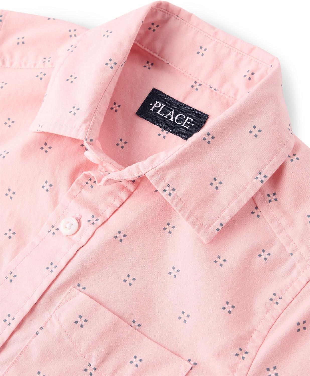 The Children’s Place Boys and Toddler Poplin Short Sleeve Button Down Shirt(Tidal Flamingo)