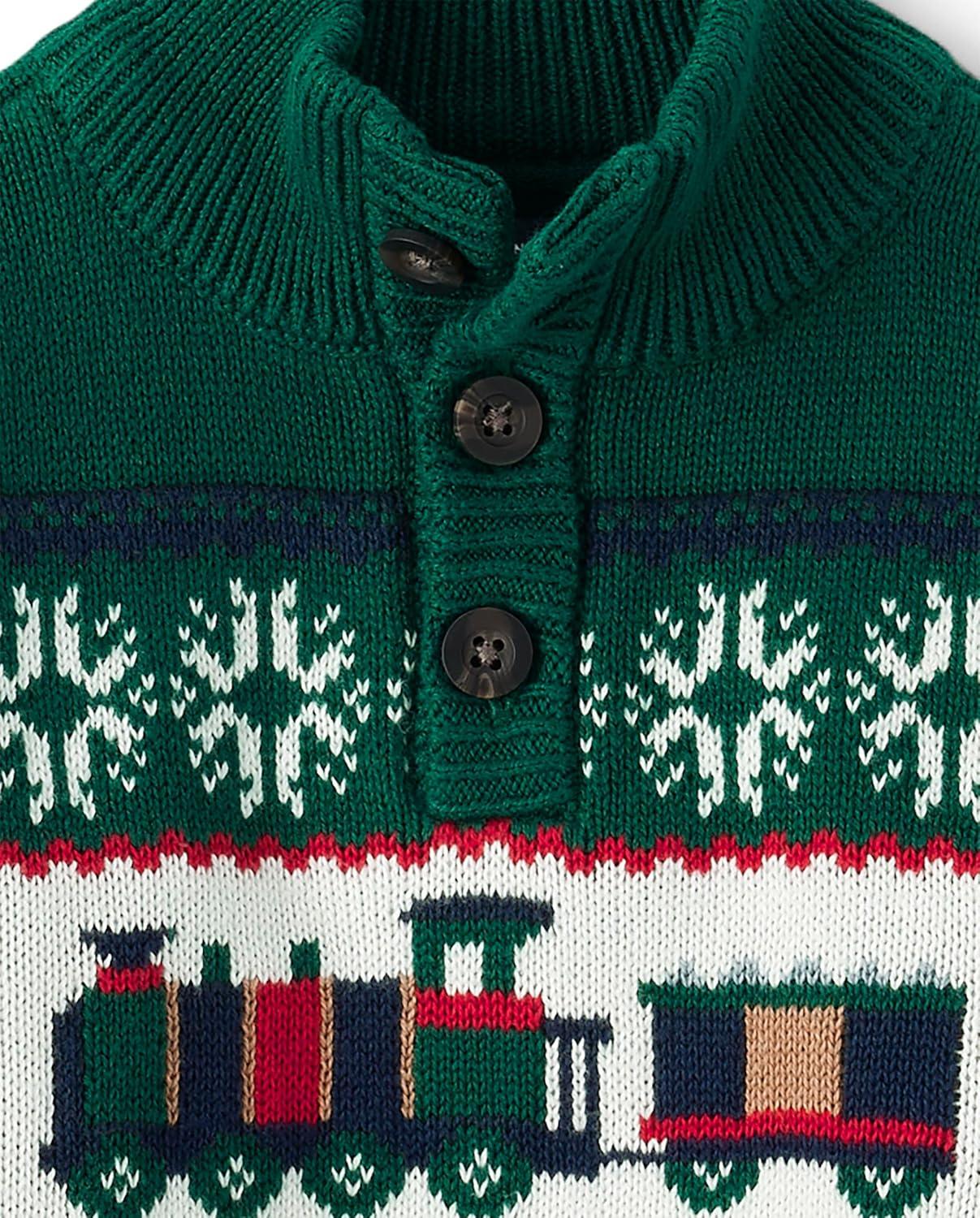 • The Children’s Place Baby Boys’ and Toddler Long Sleeve Mock Neck Pullover Sweater(Green Train Mock Neck)