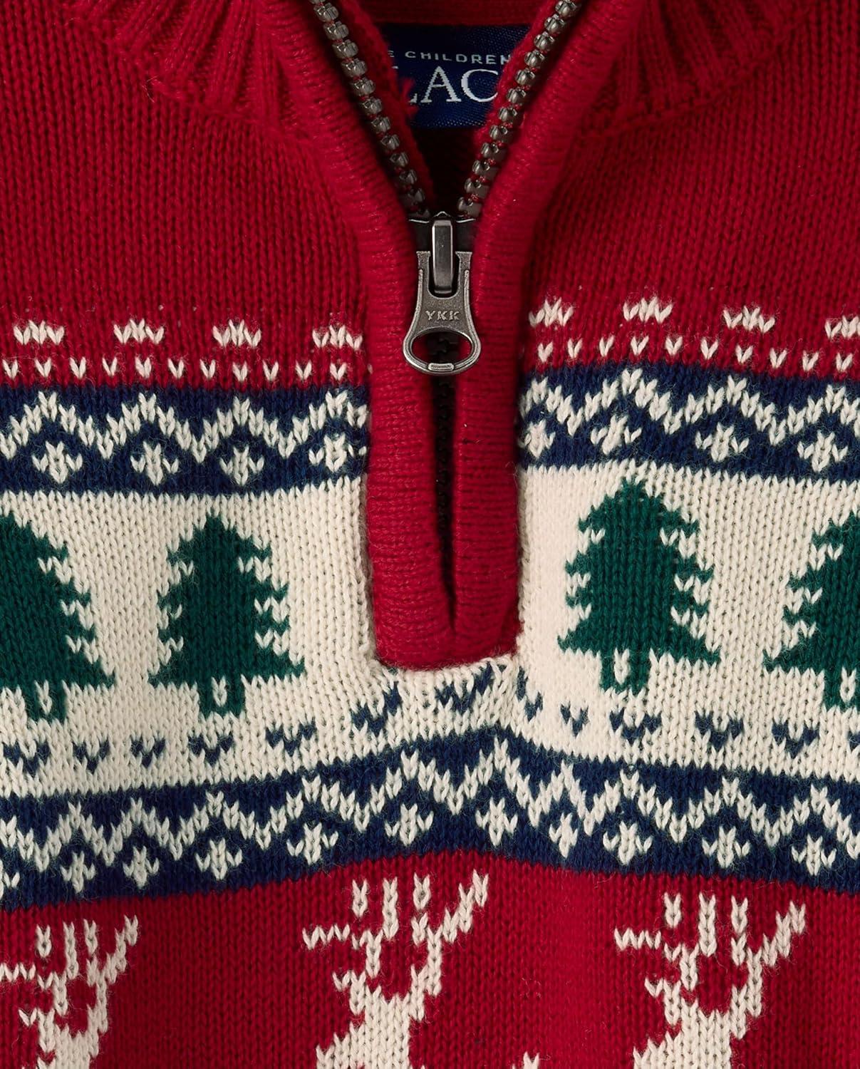 • The Children’s Place Baby Boys’ and Toddler Long Sleeve Quarter Zip Pullover Sweater(Redochre Fairisle)