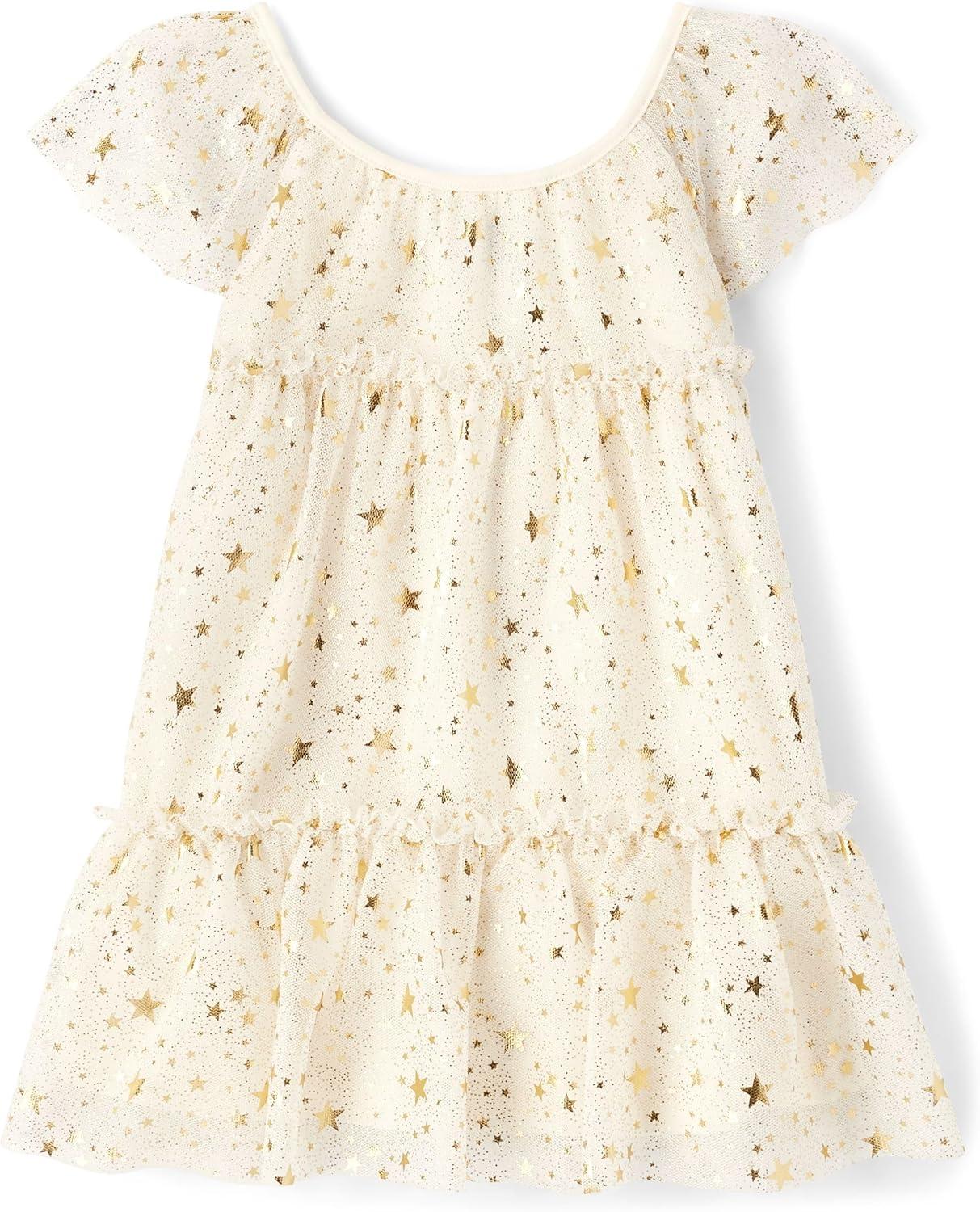 The Children’s Place Girls and Toddler Short Sleeve Fashion Dress(Starry Mesh)