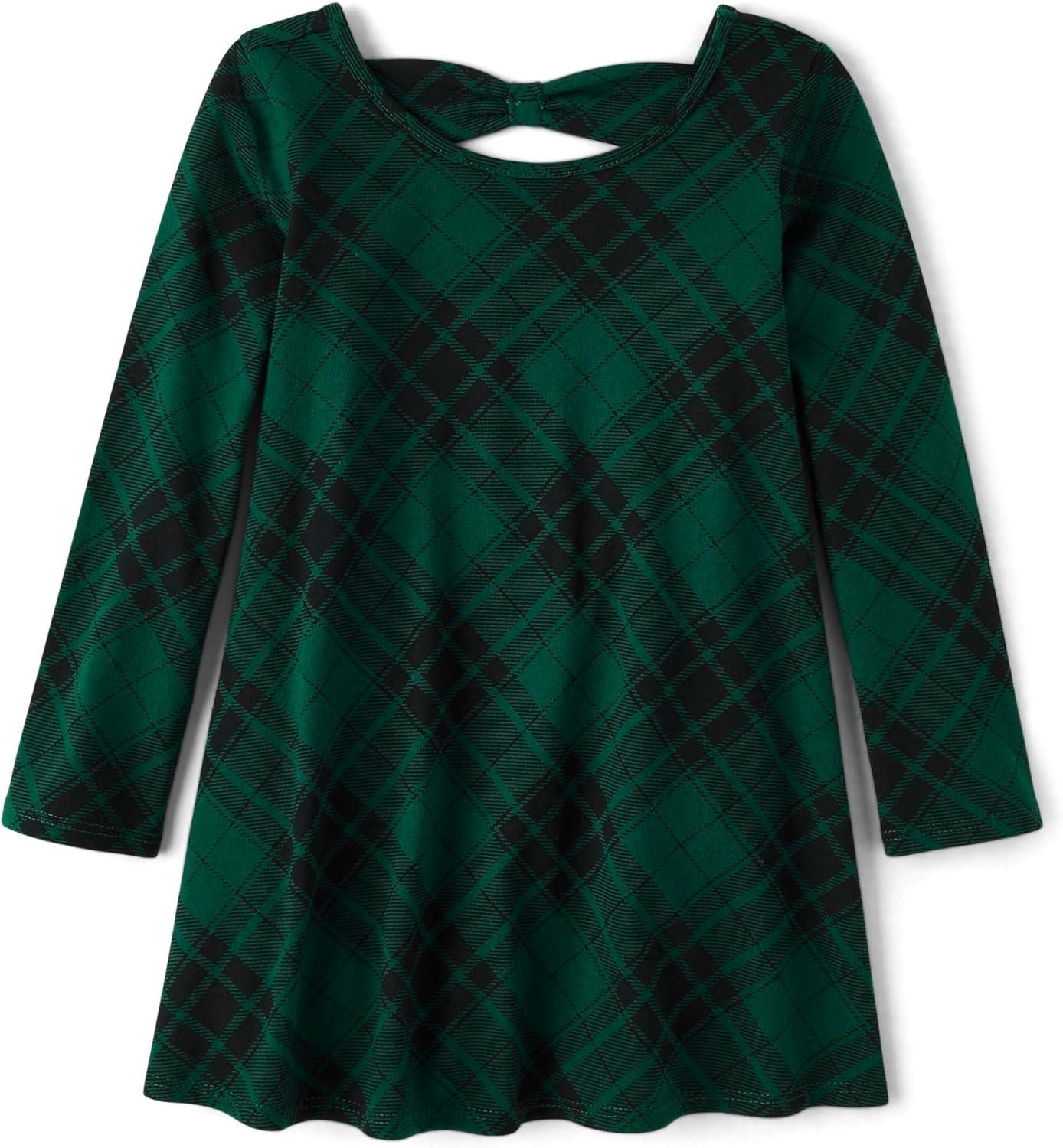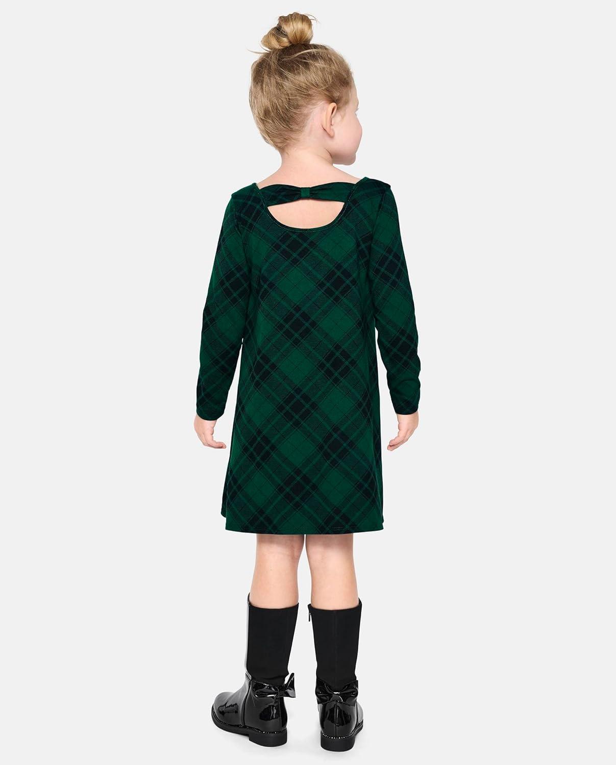 The Children’s Place Girls and Toddler Skater Dress, Long Sleeve(Green Plaid)