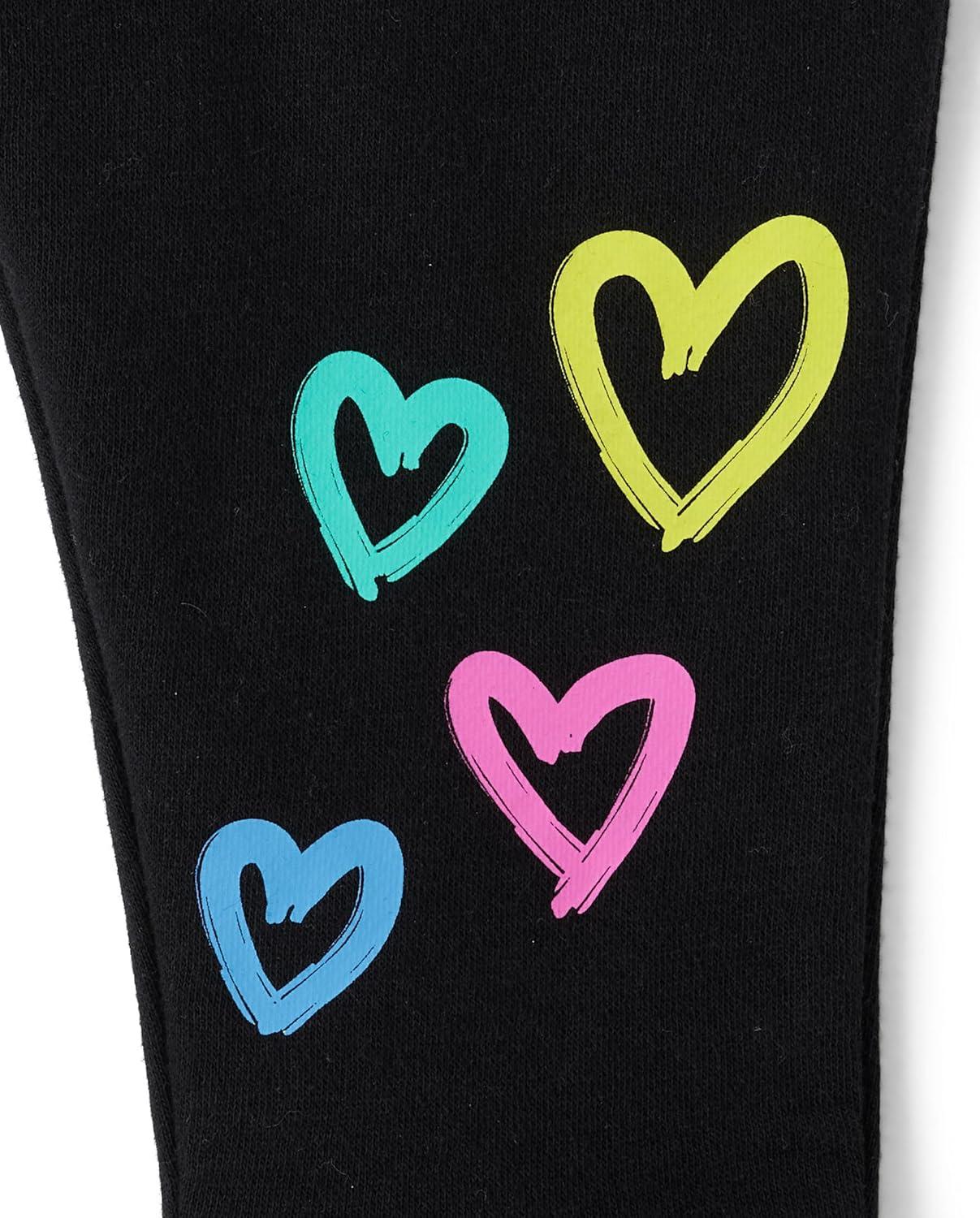 The Children’s Place baby-girls And Toddler Long Sleeve Active Shirt and Pant, 2 Piece Outfit(Black Hearts)