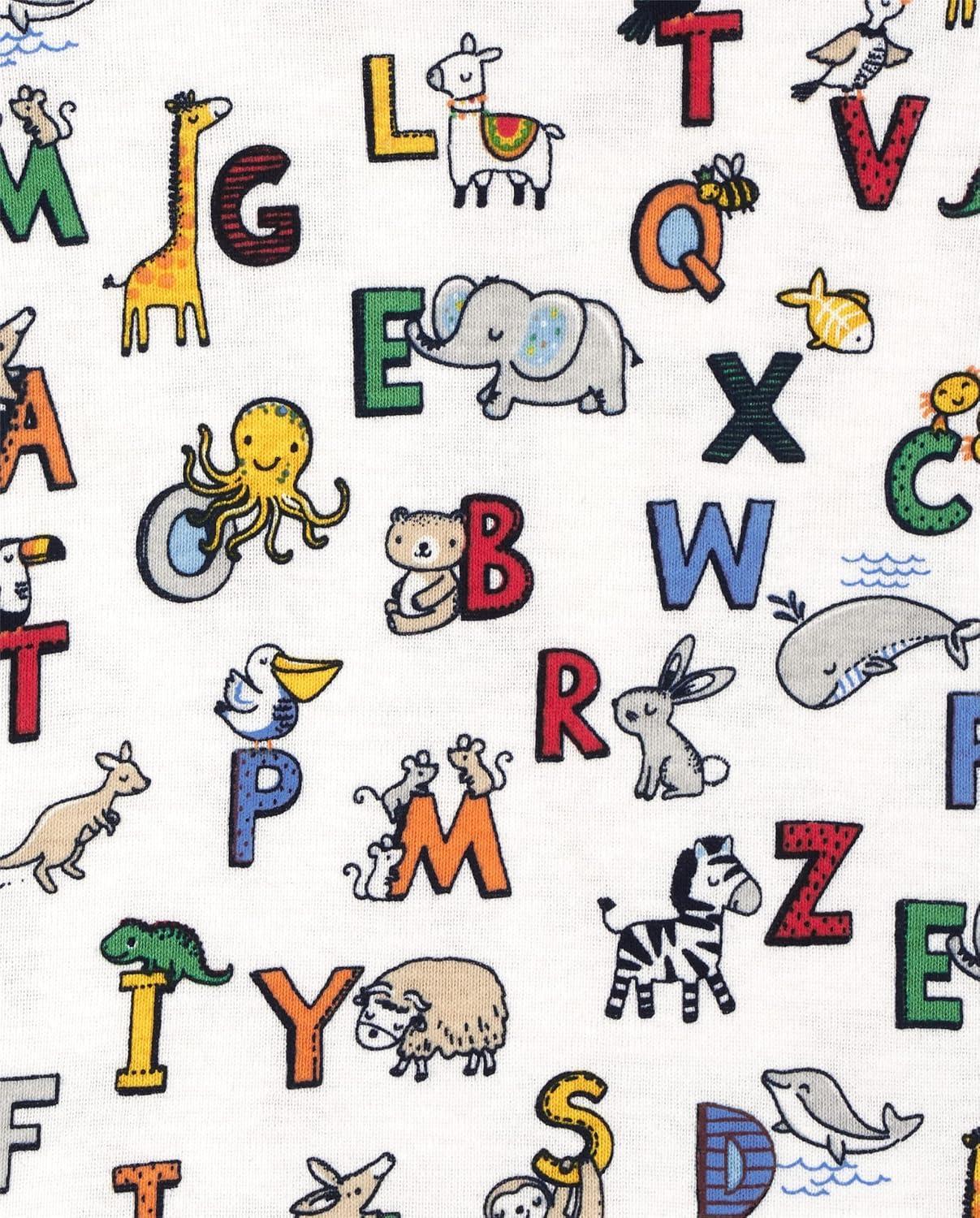 The Children’s Place Baby Boys’ Snug Fit 100% Cotton Short Sleeve Top and Pants 2 Piece Pajama Set(Cute Letters)