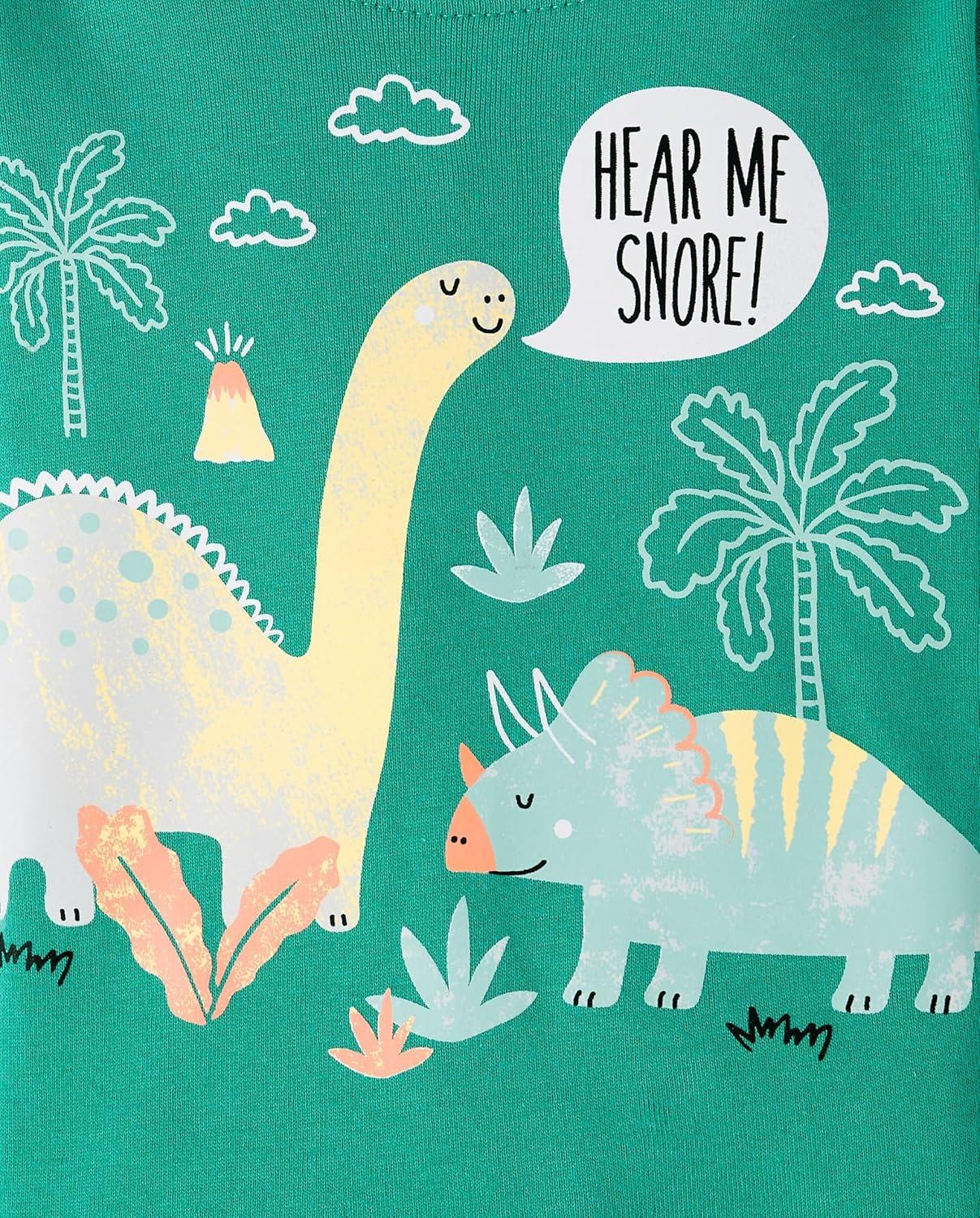The Children’s Place Baby Boys’ Snug Fit 100% Cotton Short Sleeve Top and Pants 2 Piece Pajama Set(Dinos Green)