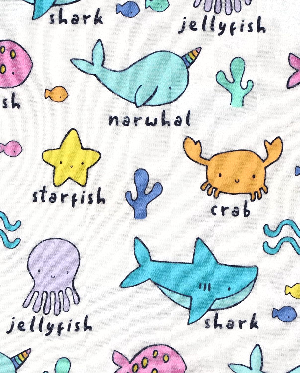 The Children’s Place Baby Boys’ Snug Fit 100% Cotton Short Sleeve Top and Pants 2 Piece Pajama Set(Sea Friends)