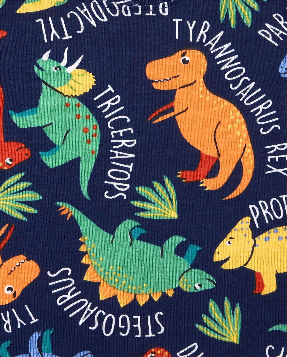 The Children’s Place Baby Boys’ Snug Fit 100% Cotton Short Sleeve Top and Pants 2 Piece Pajama Set(Smart Dinos)