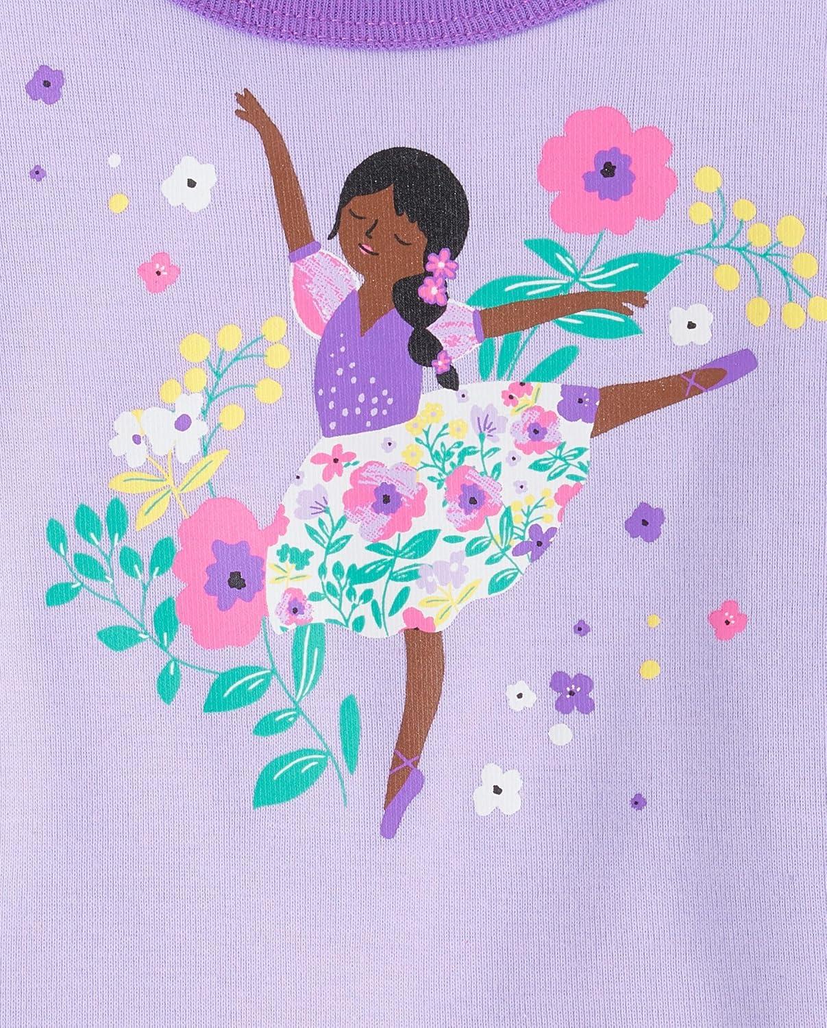 The Children’s Place Baby Girls And Toddler Short Sleeve Top and Pants Snug Fit 100% Cotton 2 Piece Pajama Set(Lavander Girl)