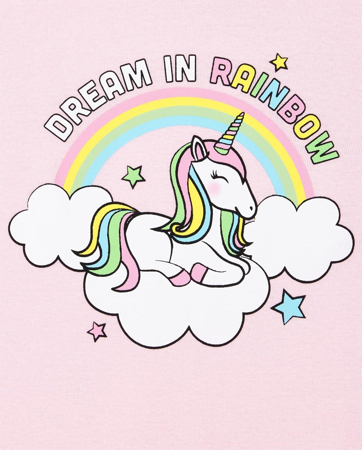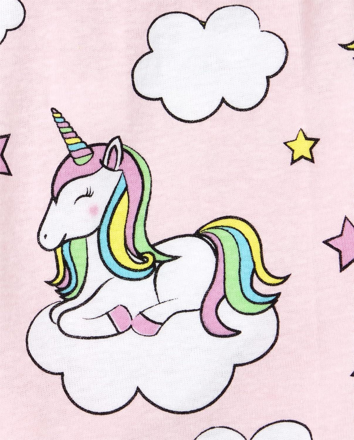 • The Children’s Place baby-girls And Toddler Snug Fit 100% Cotton Short Sleeve Top and Pants 2 Piece Pajama Set(Unicorn Rainbow)
