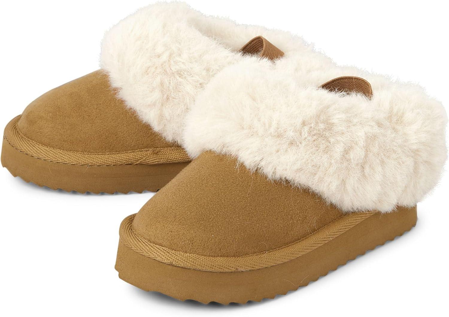 The Children’s Place Baby Girls’ Indoor/Outdoor Comfy Slip-On Platform Shoe with Backstrap, Faux Fur Lined(Lt Tan)