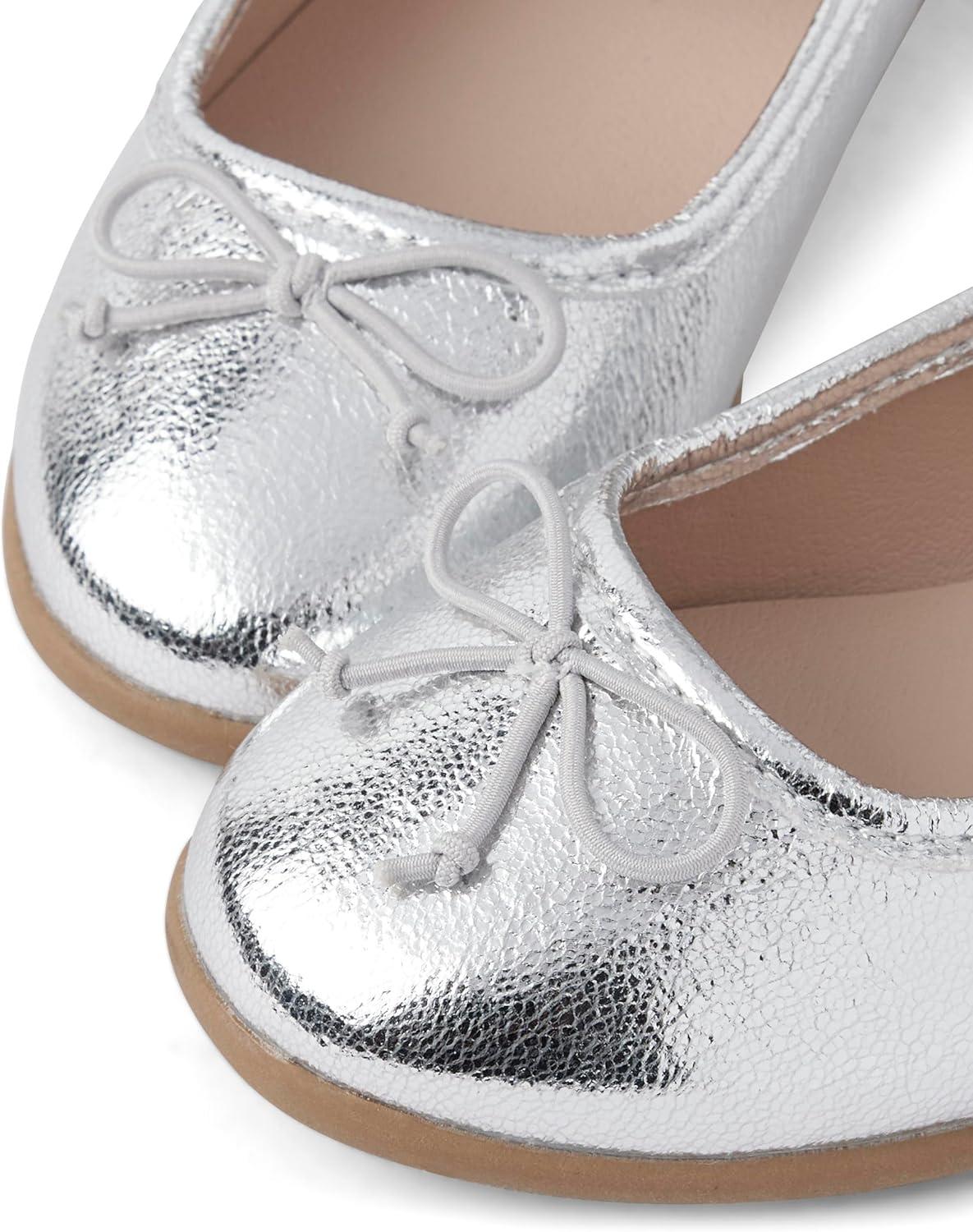 The Children’s Place Girl’s Baby Toddler Closed Toe Ballet Flats(Silver)