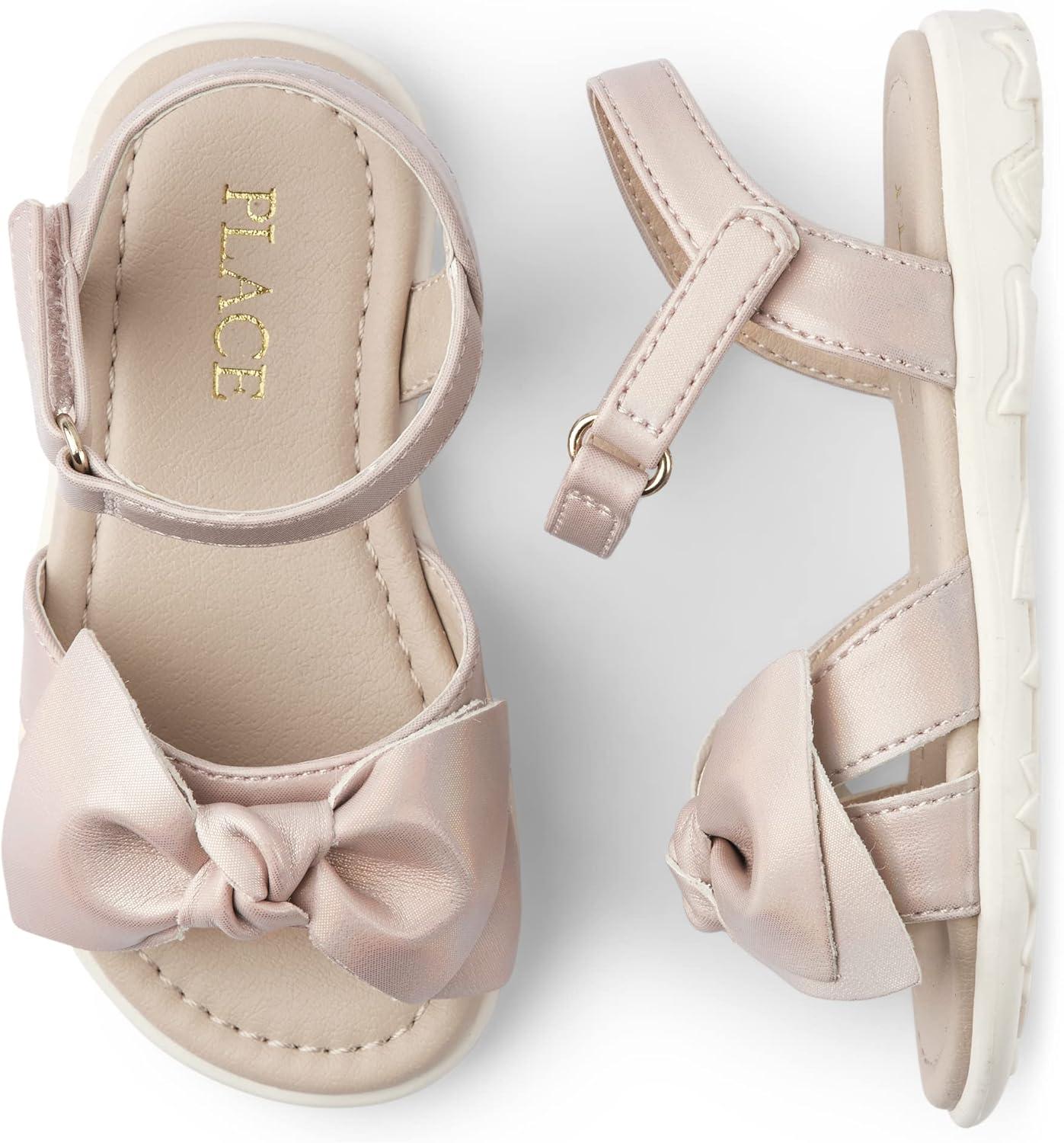 The Children’s Place Girl’s Baby Toddler Flat Sandals with Adjustable Ankle Strap Slipper(Pink Bow)