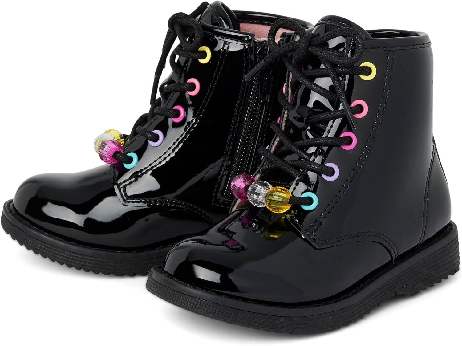 The Children’s Place Girl’s Baby Toddler Lace Up Combat Boots(Black Beaded)