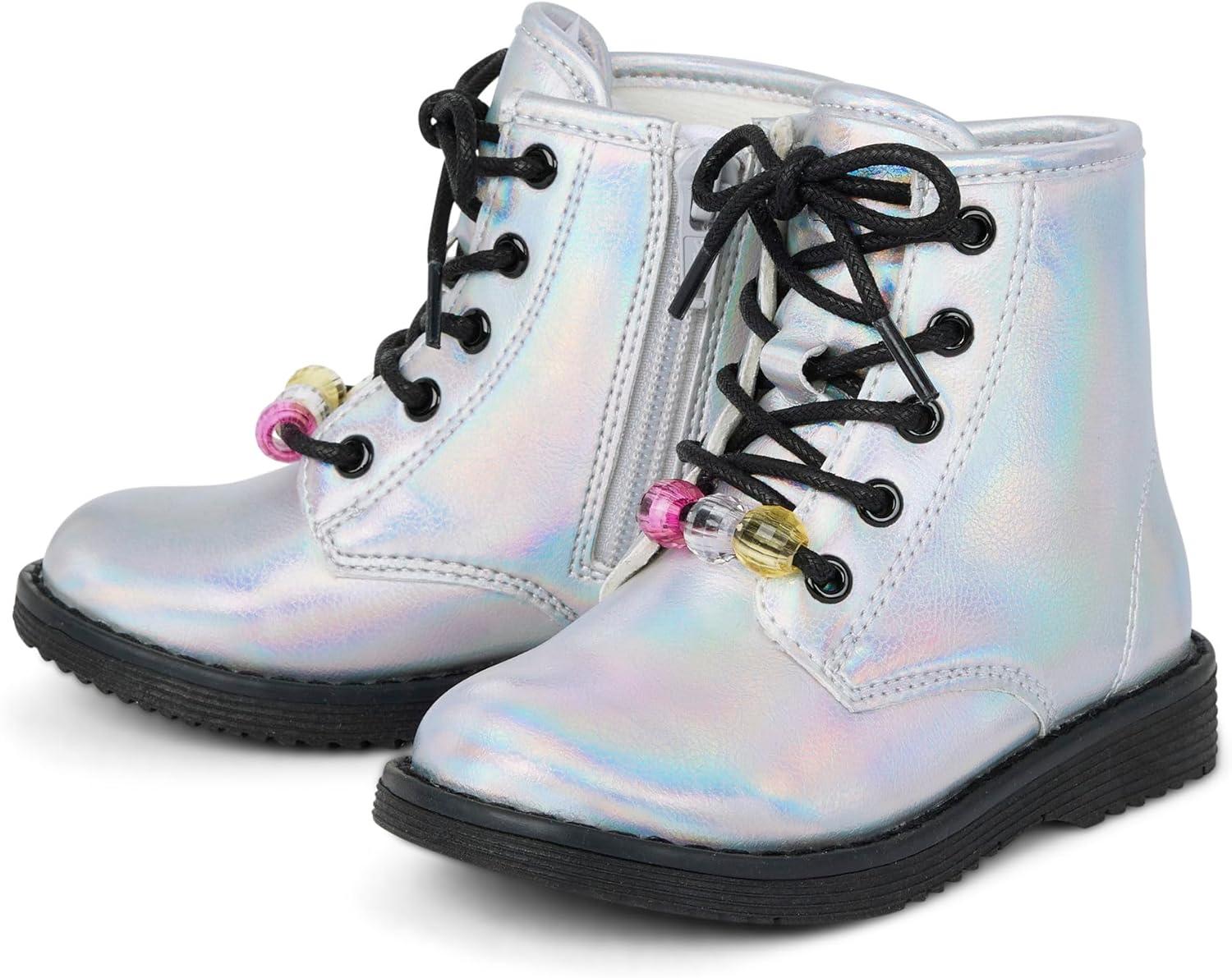 The Children’s Place Girl’s Baby Toddler Lace Up Combat Boots(Metallic Silver)
