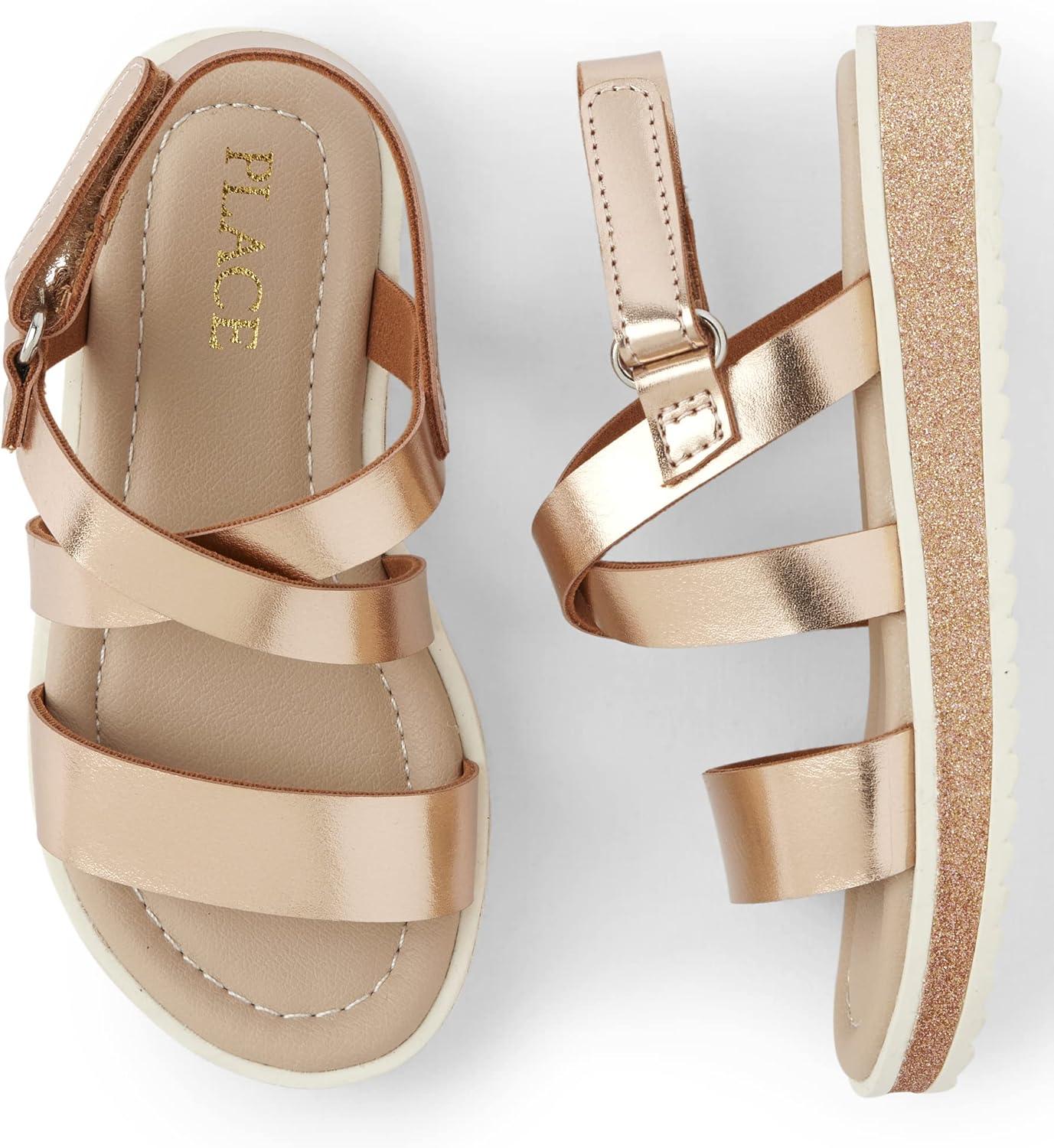 The Children’s Place girls Baby Girls and Toddler Platform Sandals With Adjustable Ankle Strap(Rose Gold)