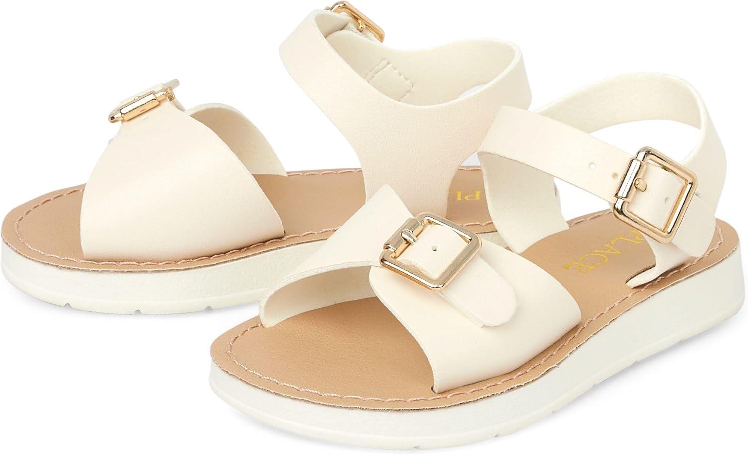 The Children’s Place girls Baby Girls and Toddler Platform Sandals With Adjustable Ankle Strap(White Flatform)