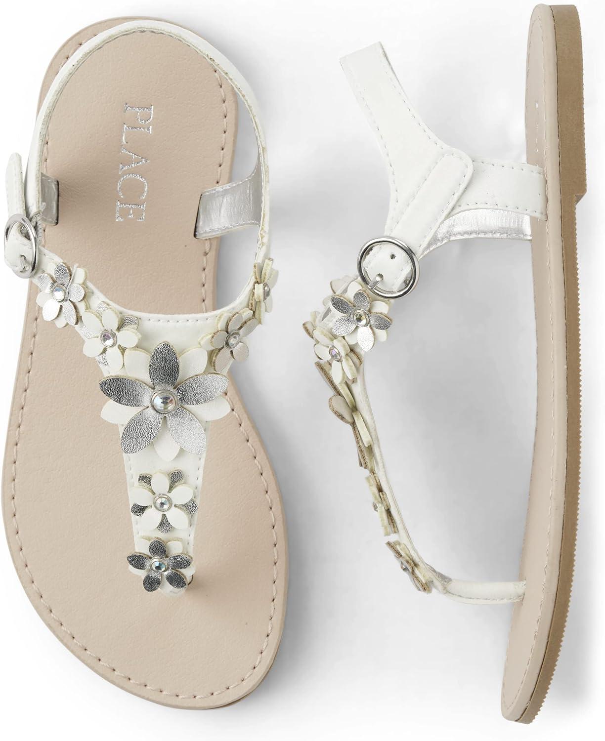 The Children’s Place Girls’ T-Strap Sandals(White Flower)