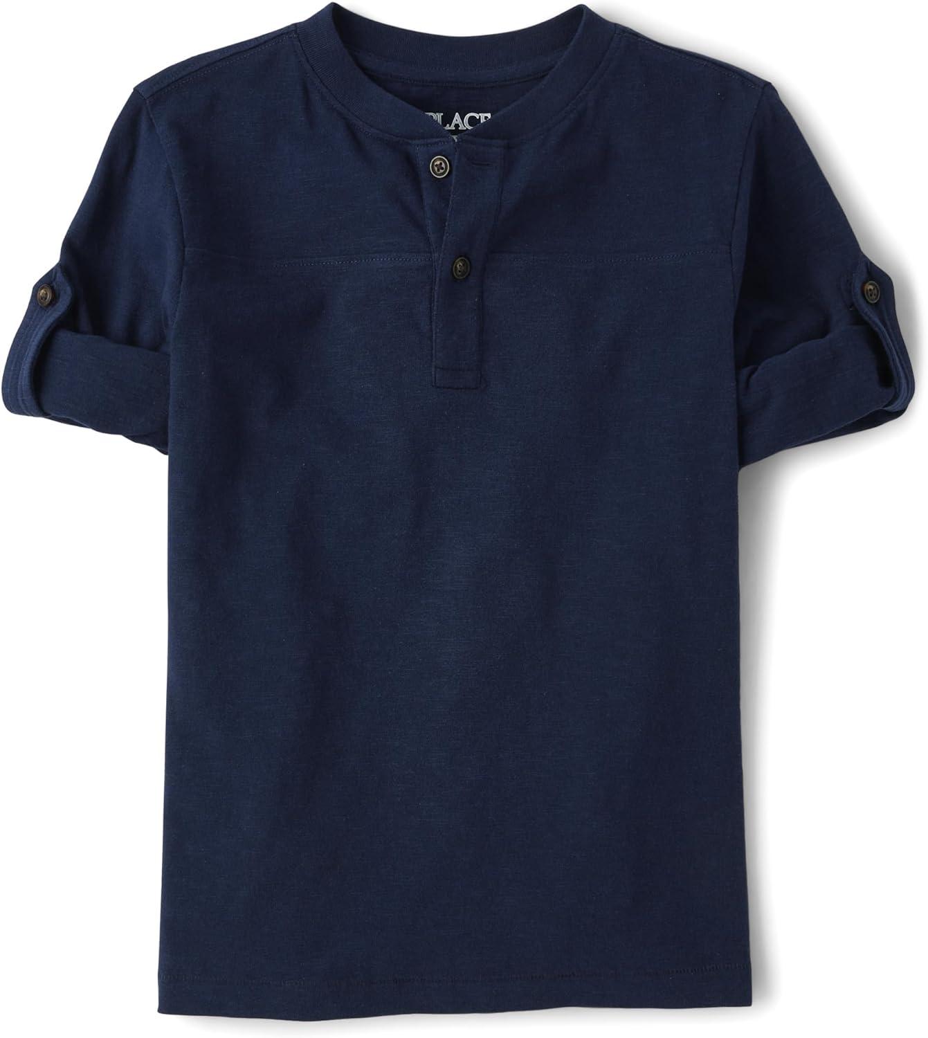 The Children’s Place Boys Long Sleeve Rolled Cuff Henley Shirt(Tidal Blue)
