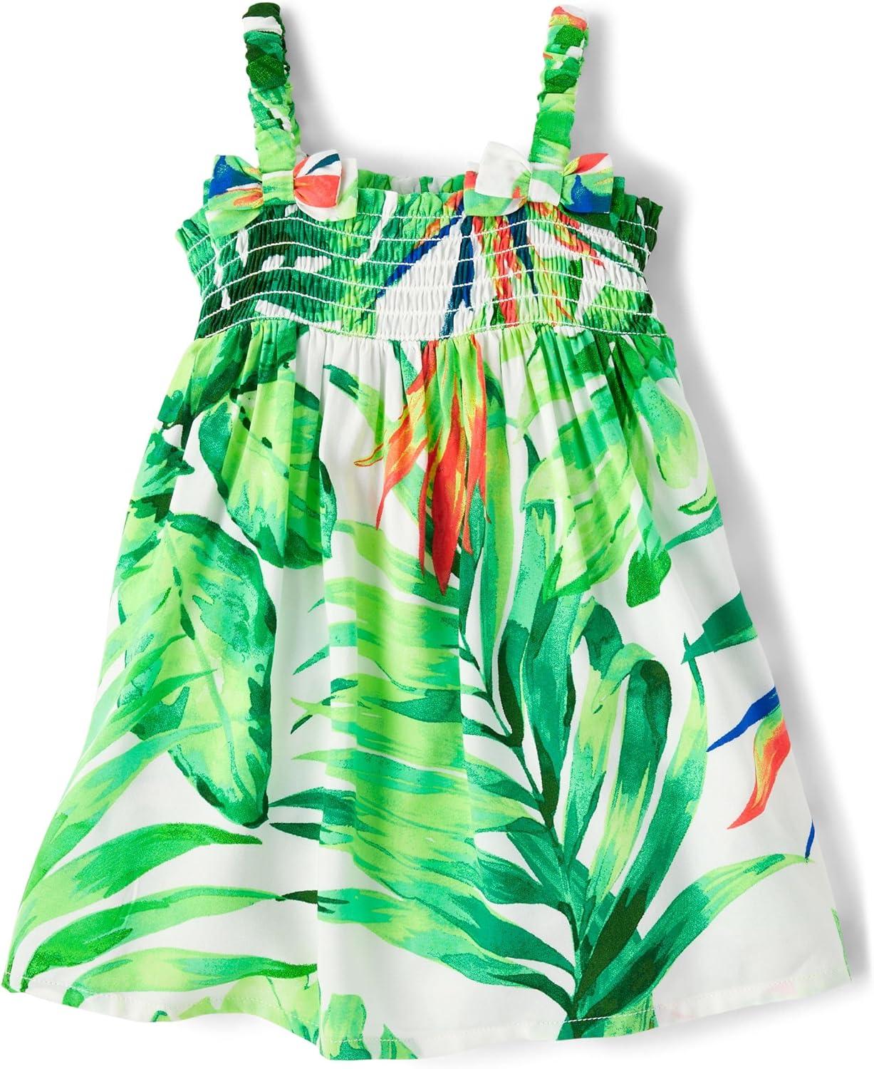The Children’s Place Baby Girls’ and Newborn Sleeveless Casual Dress(White Tropical Print)
