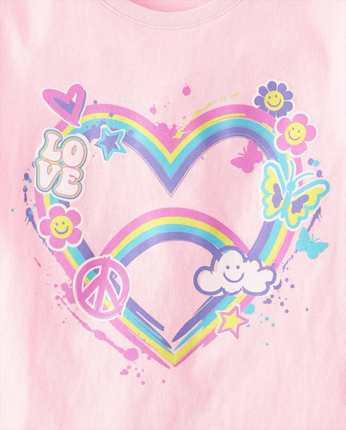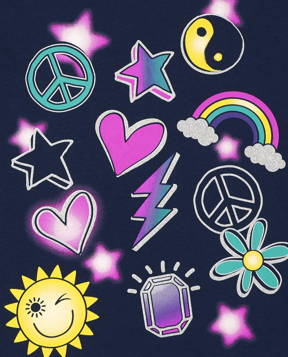 The Children’s Place Girls Trends,Icons Short Sleeve Graphic T-Shirts,4 Pack(Love/Doodles/Happy/Peace Sign)