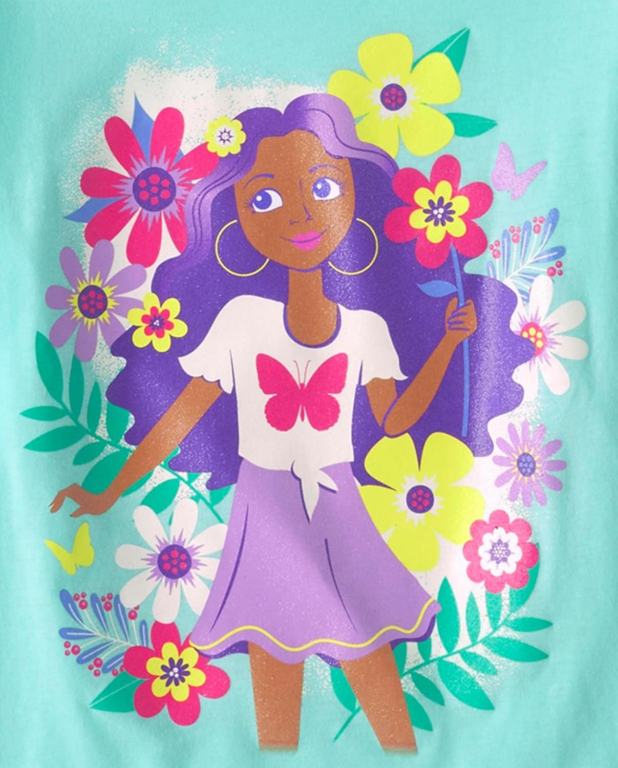 The Children’s Place Girls Unicorns,Sports,Butterflies Short Sleeve Graphic T-Shirts,2 Pack(Girl/Girl Flowers)