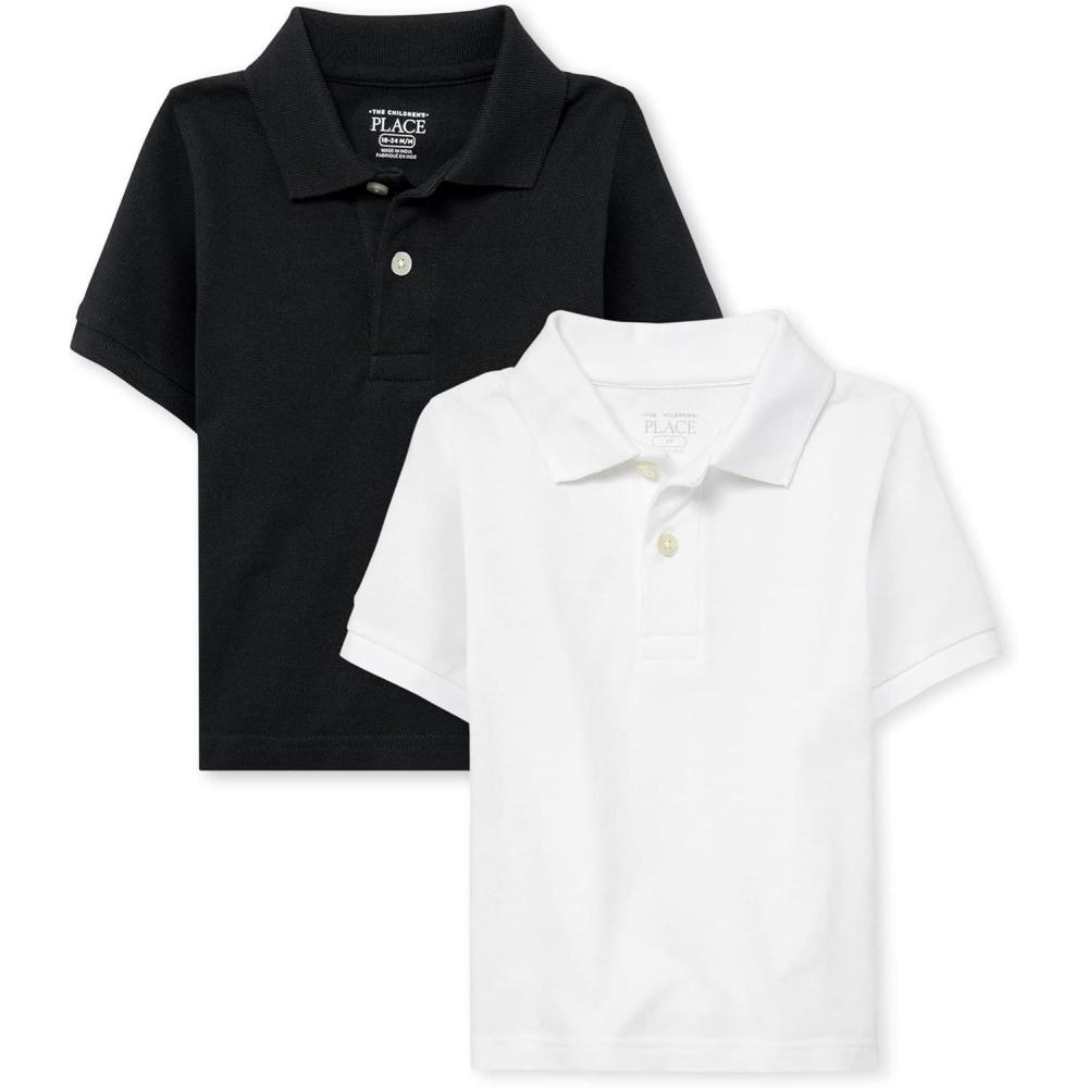 The Children’s Place Baby and Toddler Boys Short Sleeve Polo Shirt(Black/White 2-pack)