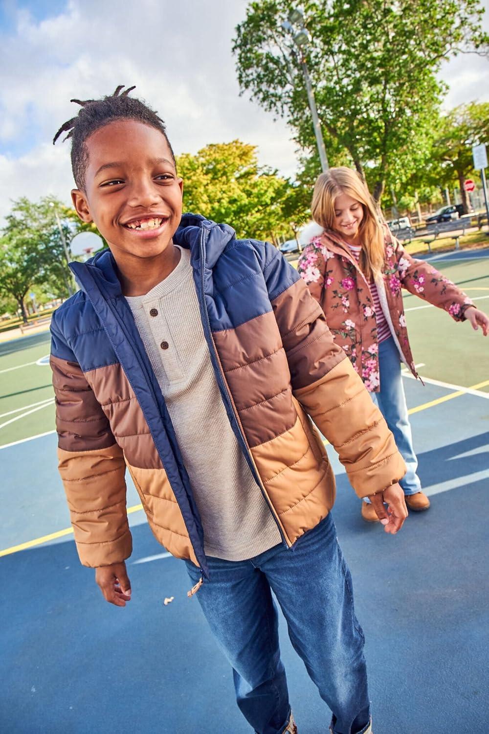 The Children’s Place Baby and Toddler Girls’ Medium Weight Wind-Resistant, Water-Resistant Puffer Jacket(Rose Heart Bubble)