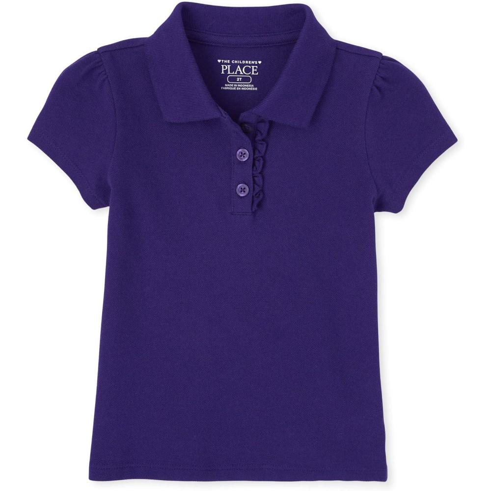 The Children’s Place baby-girls And Toddler Short Sleeve Ruffle Pique Polo(Regal Violet Single)