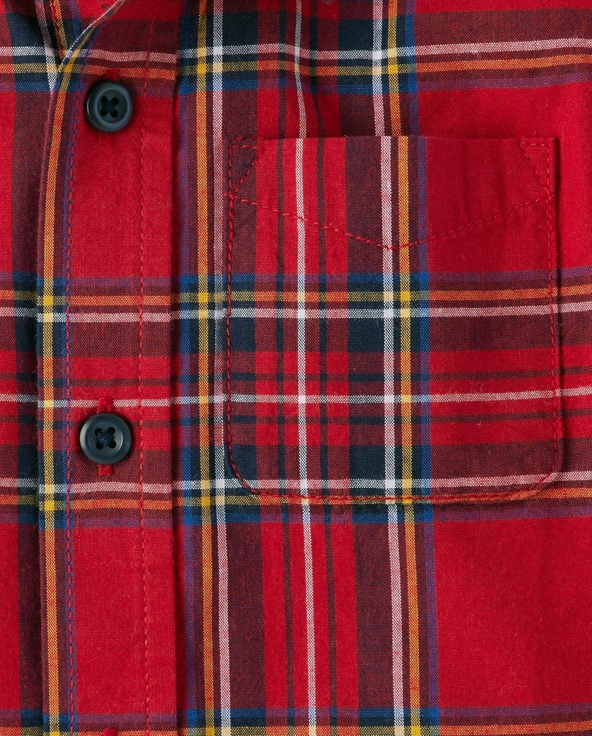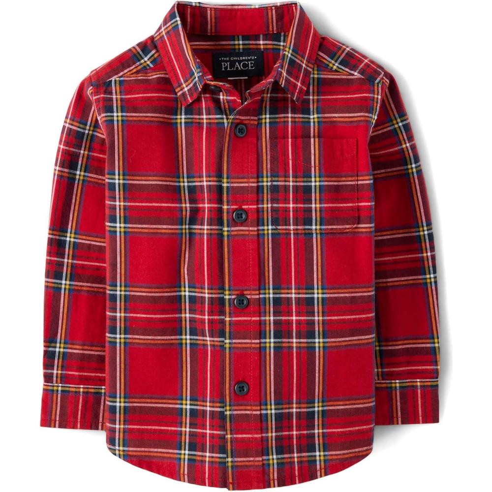 The Children’s Place Big Boys’ Long Sleeve Poplin Button Down Shirt(Classic Red Tartan)