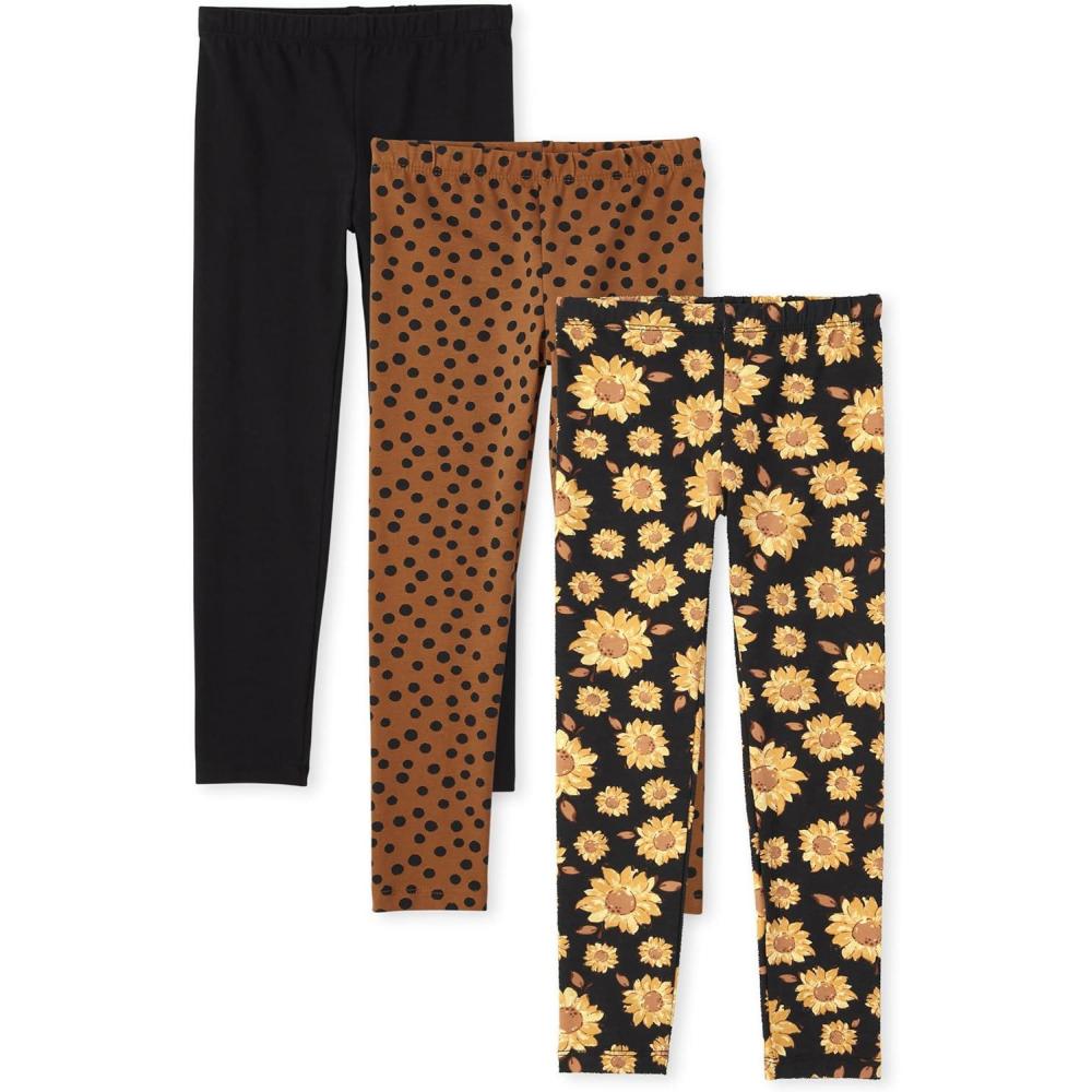 The Children’s Place Big Girls’ Fashion Leggings, Heather Grey 47827 (Pack of 2), Large/10/12(Black/ Spotted/Sunflowers 3-pack)