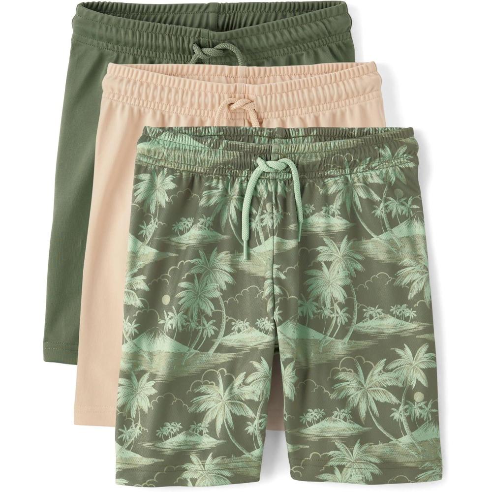 The Children’s Place Boys Athletic Basketball Shorts(Tropical/Solid 3-pack)