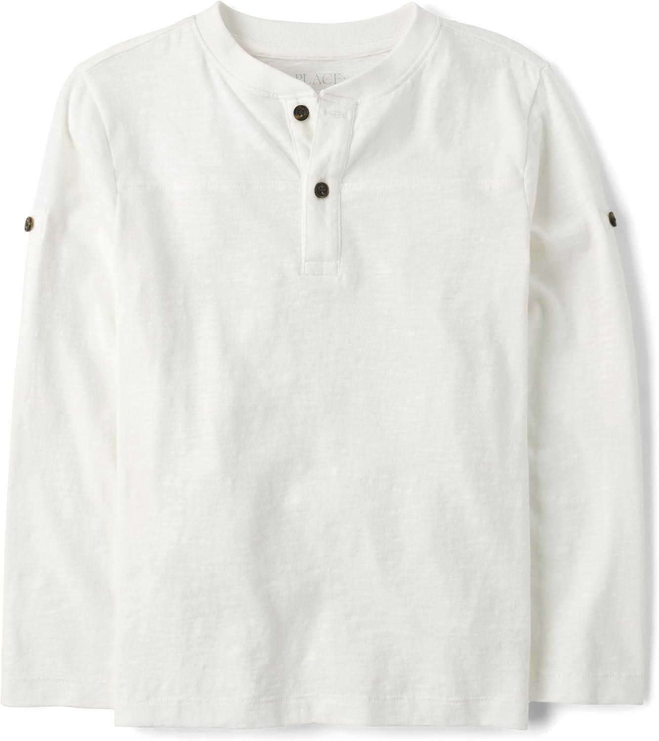 The Children’s Place Boys Long Sleeve Rolled Cuff Henley Shirt(Bunny’s Tail White)