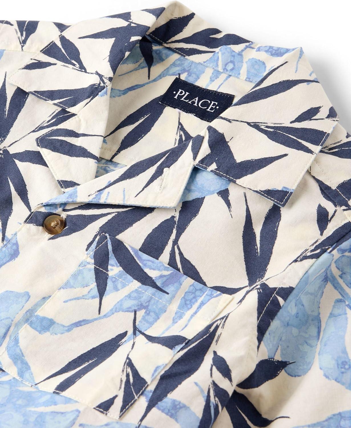 The Children’s Place Boys Short Sleeve Button Down Shirt(Pearl Blue Tropical)