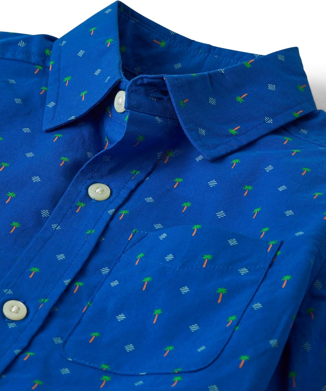 The Children’s Place boys Short Sleeve Button Up Shirt(Blue Geo)