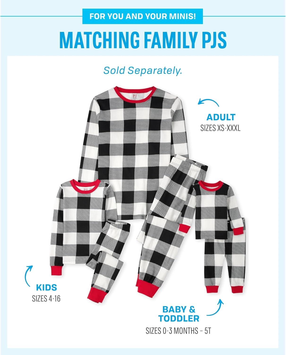 The Children’s Place Family Matching, Plaid Waffle 2 Piece Pajama Sets(Black/White Check)