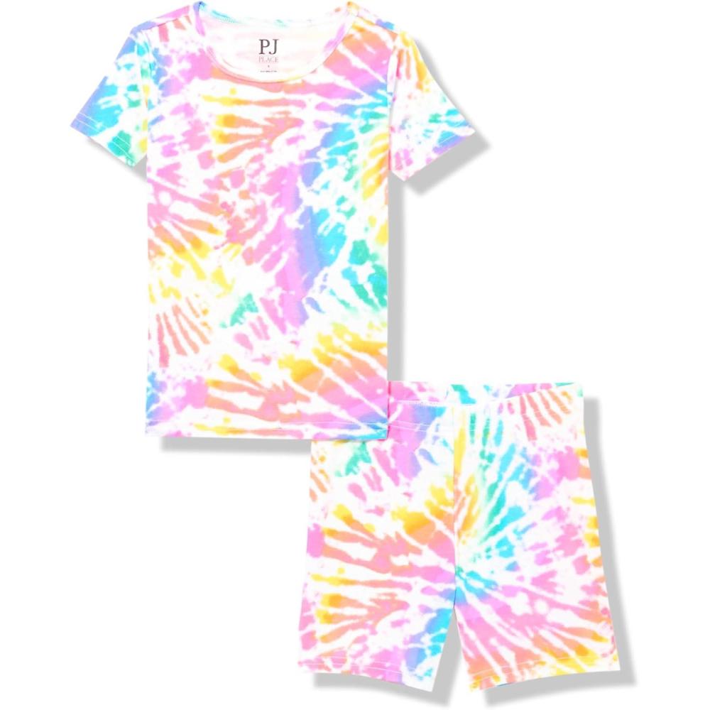 The Children’s Place girls 100% Cotton Short Sleeve Top and Shorts,2 Piece Pajama Set(Rainbow Spiral)