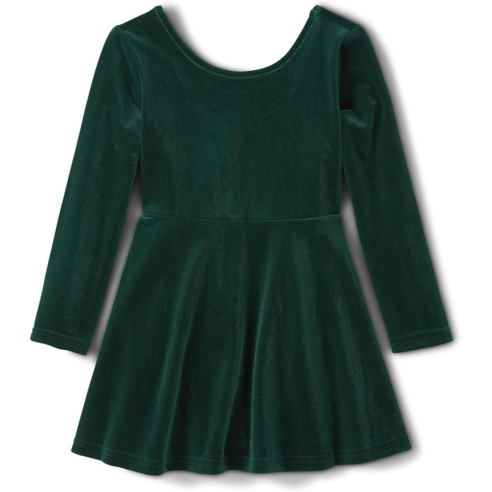 The Children’s Place Girls and Toddler Skater Dress, Long Sleeve(Velour Green)