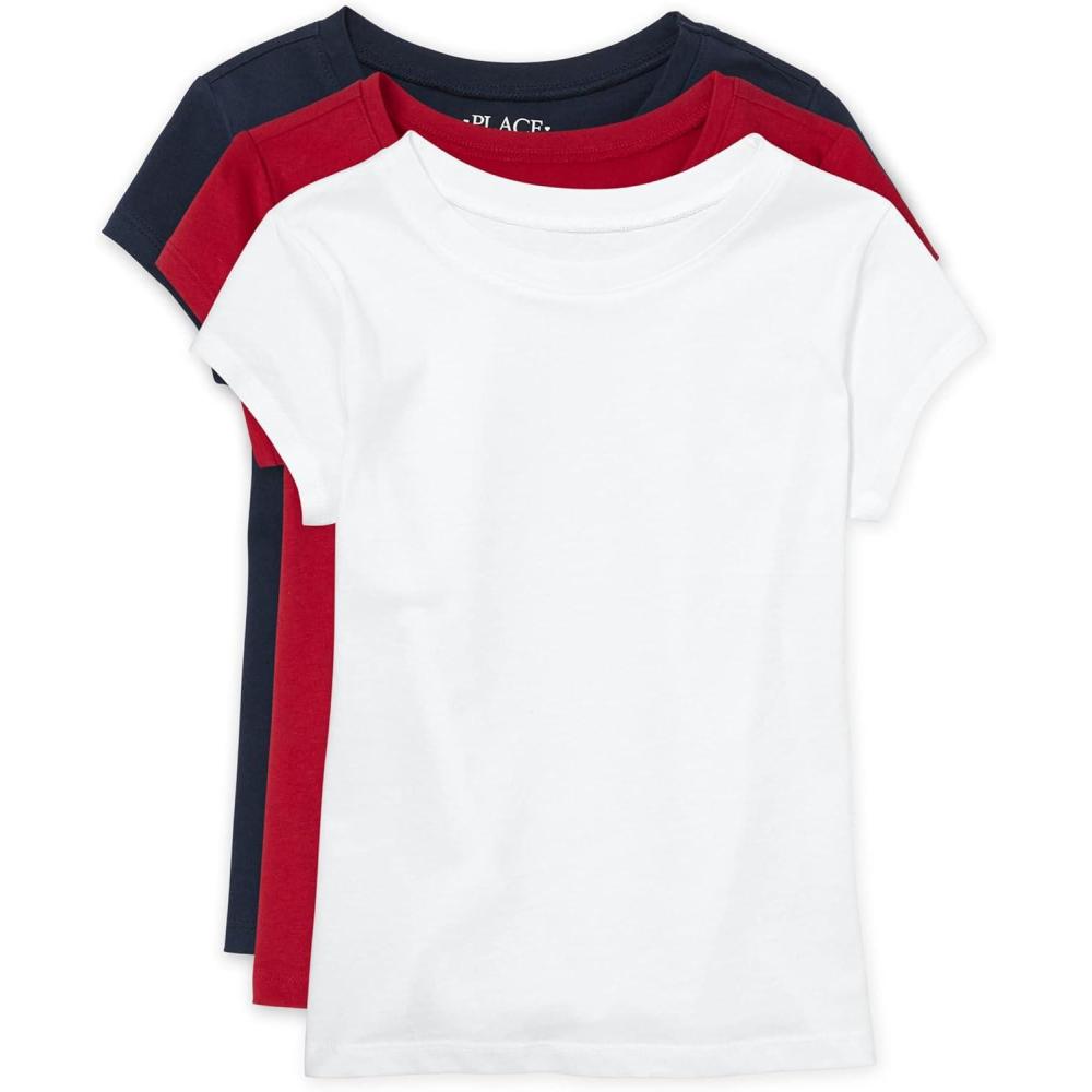 The Children’s Place Girls Basic Short Sleeve Layering Tee(Ruby/ Tidal/White 3-pack)