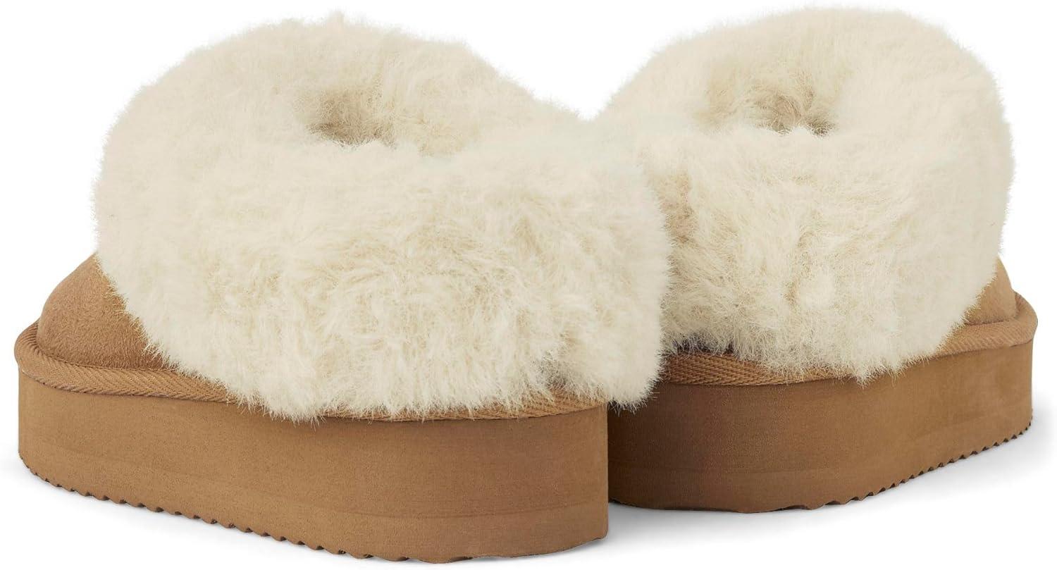 The Children’s Place girls Girls Indoor/Outdoor Comfy Slip on Platform Shoes, Faux Fur Lined(Tan)