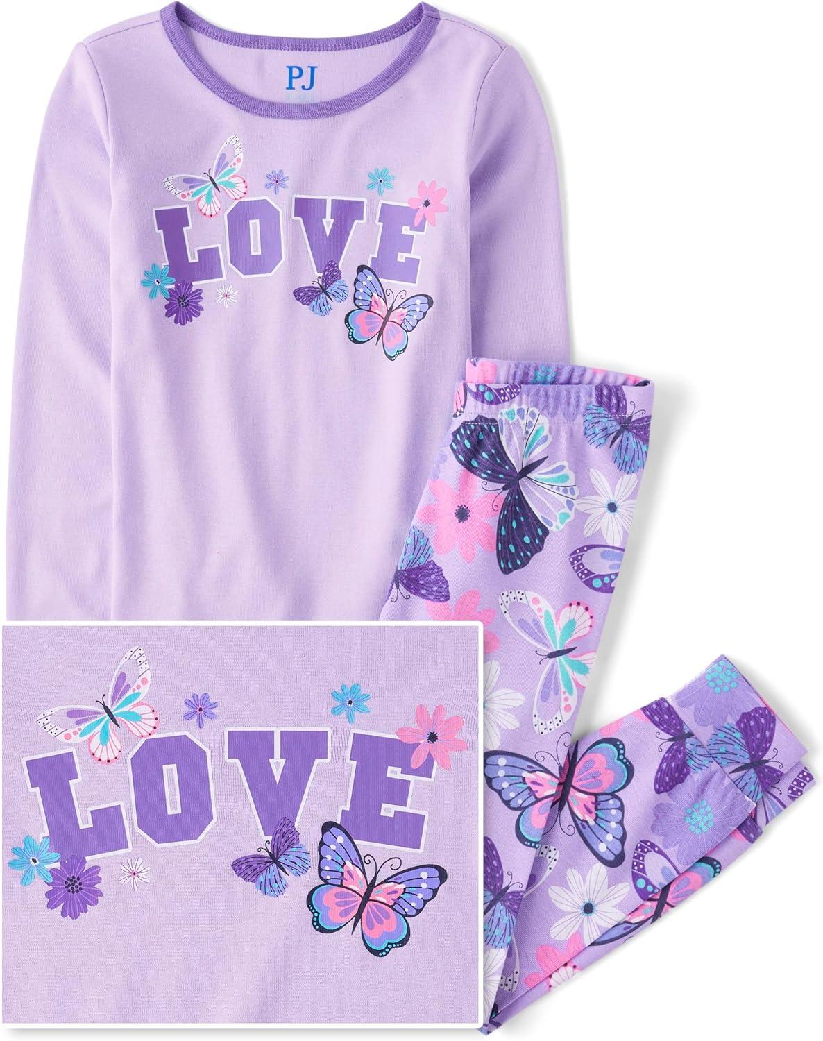 The Children’s Place girls Long Sleeve Top and Pants Snug Fit 100% Cotton 2 Piece Pajama Set(Purple Love)