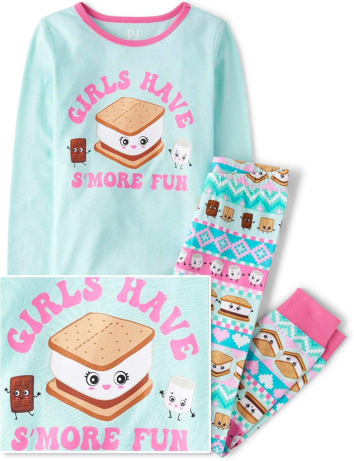 The Children’s Place girls Long Sleeve Top and Pants Snug Fit 100% Cotton 2 Piece Pajama Set(Smore Fun)