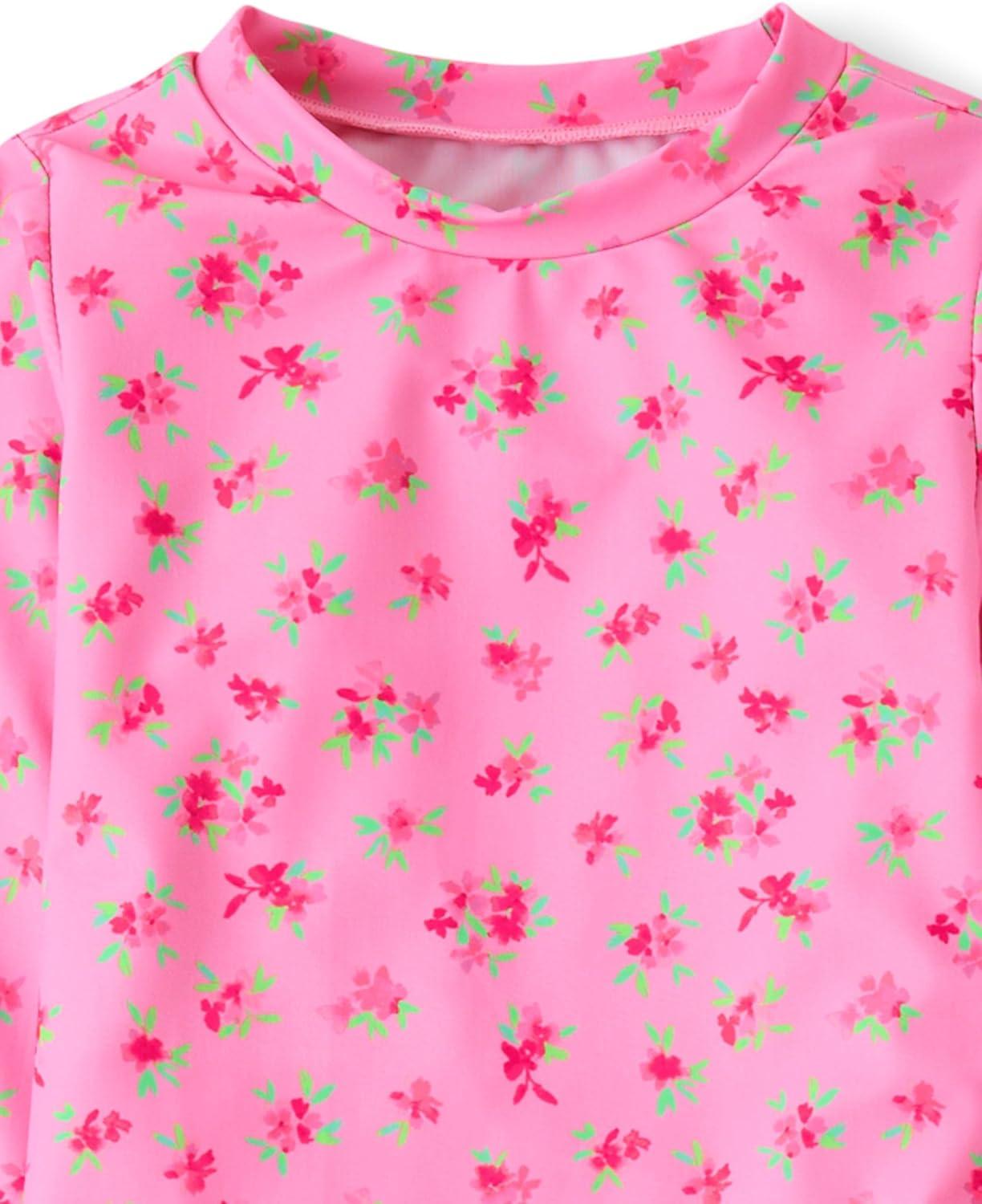 The Children’s Place Girls Rashguard and Swimsuit Set(Neon Pink 3-piece)