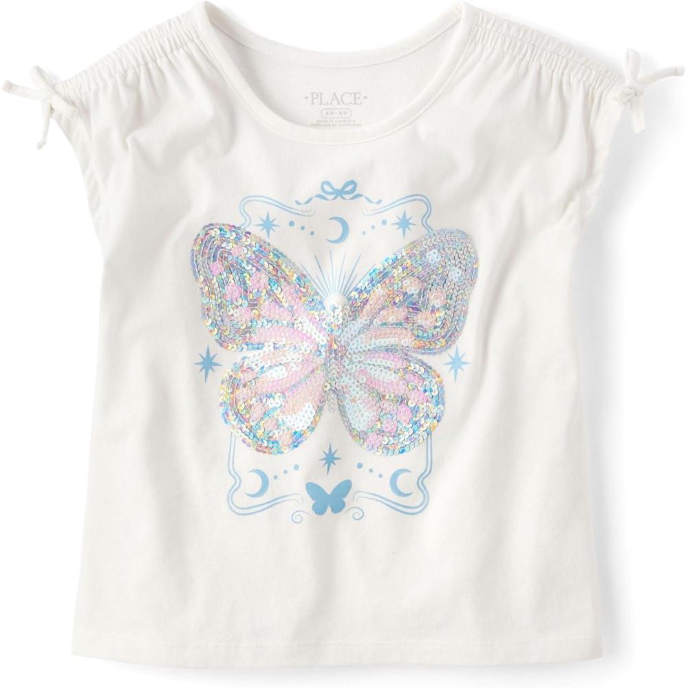 The Children’s Place Girls Short Sleeve Flip Sequin Tops(Butterfly)