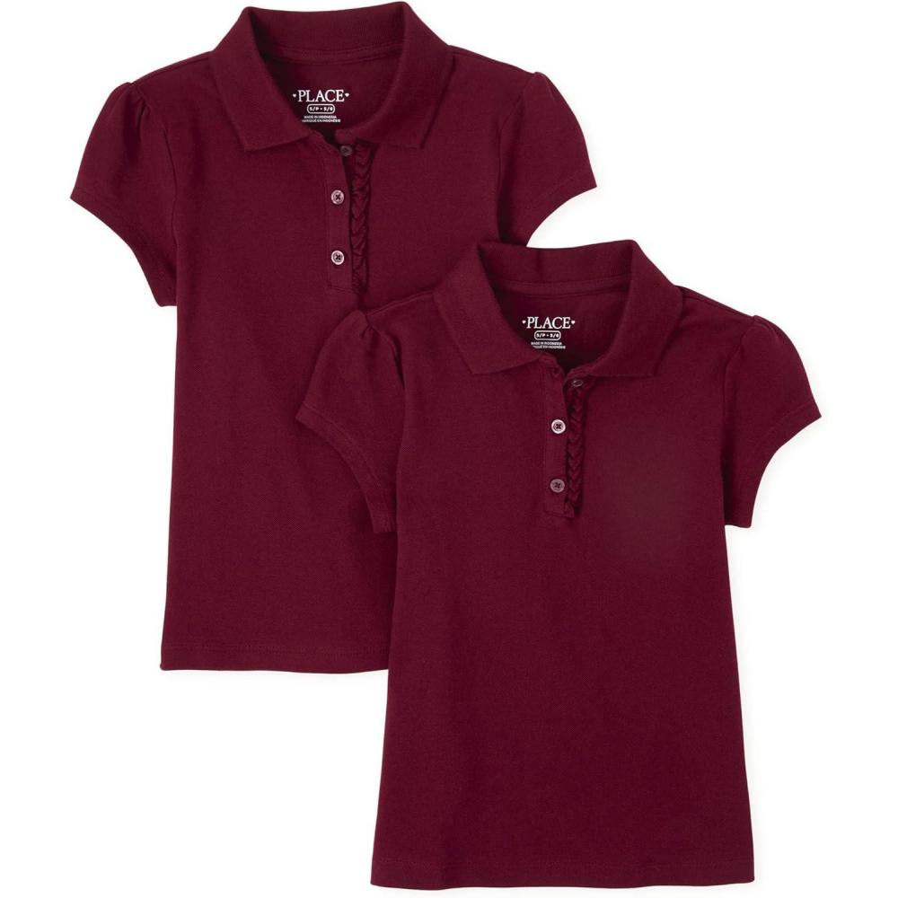 The Children’s Place Girls’ Short Sleeve Ruffle Pique Polo, 2 Pack(Rubine)