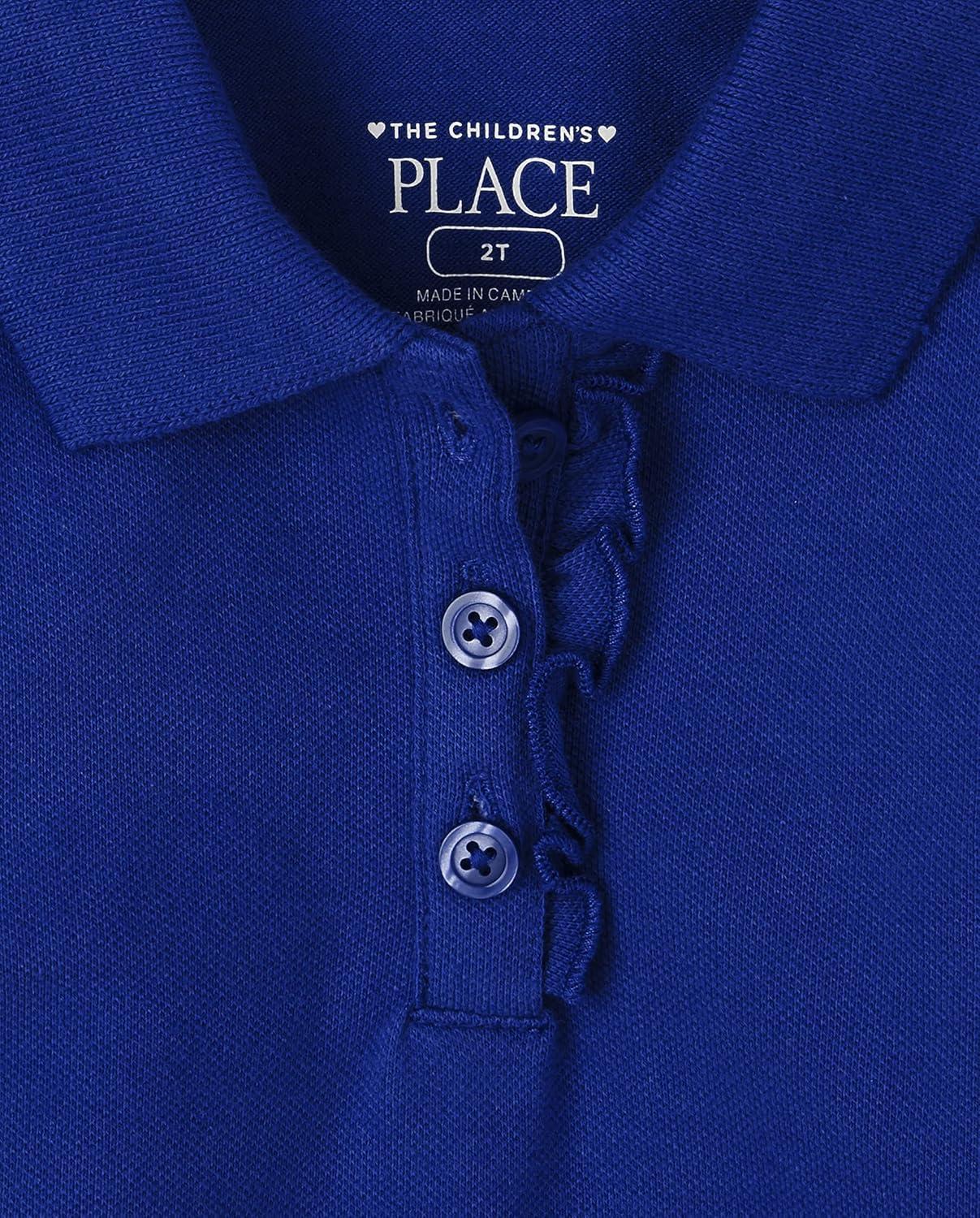 The Children’s Place girls Short Sleeve Ruffle Pique Polo(Renew Blue Single)