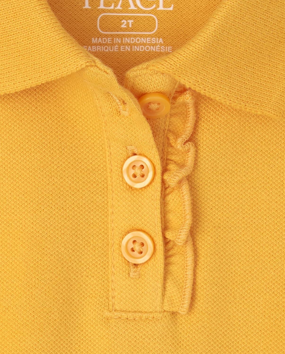 The Children’s Place girls Short Sleeve Ruffle Pique Polo(Yellow Pencil Single)