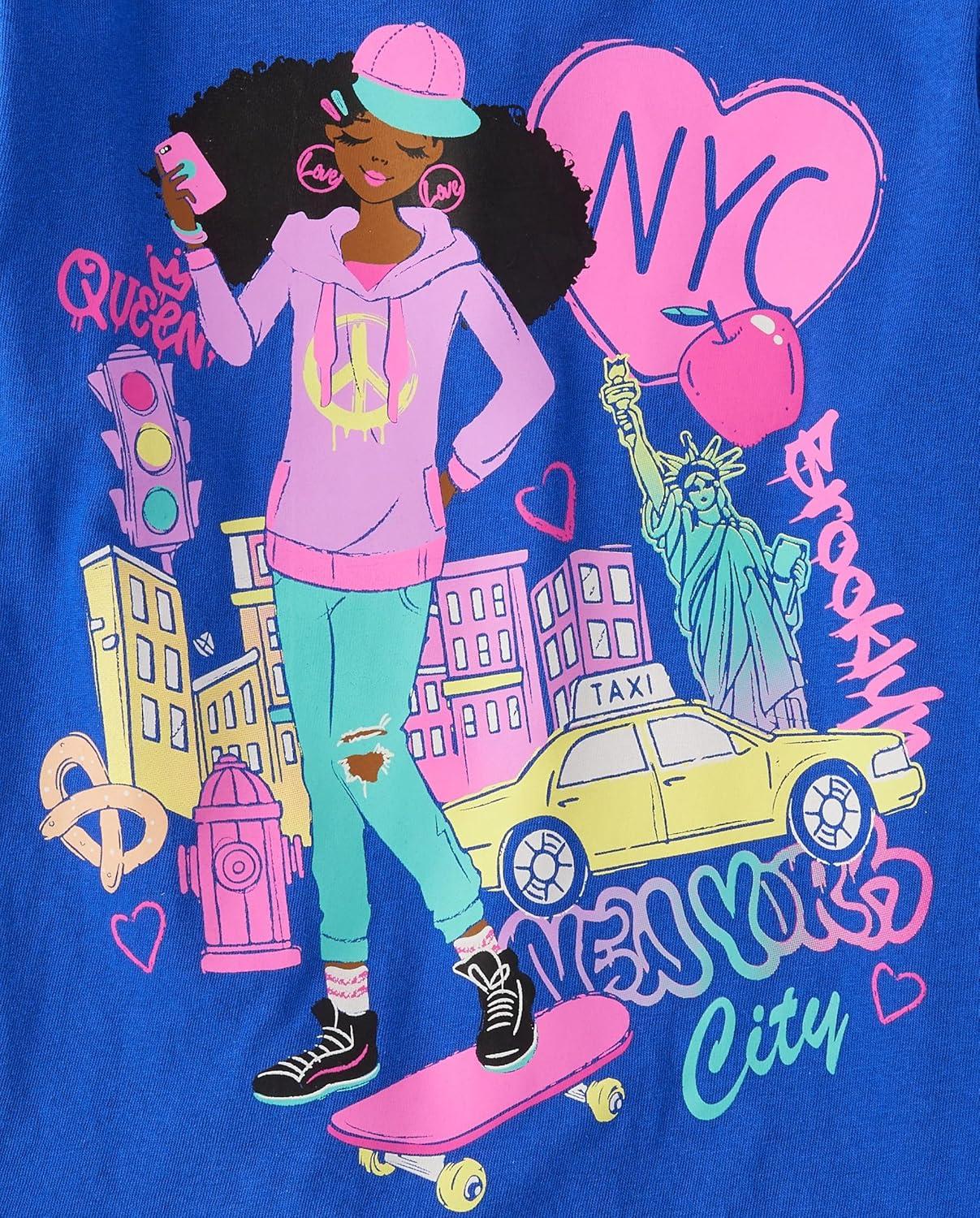 The Children’s Place Girls Sports,Trends,Icons Short Sleeve Graphic T-Shirts,3 Pack(Paris/Nyc/Flower Girl)