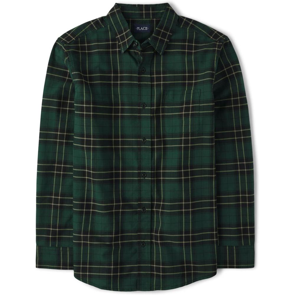 The Children’s Place Mens Long Sleeve Button Up Shirt(Green Pine – Dad)
